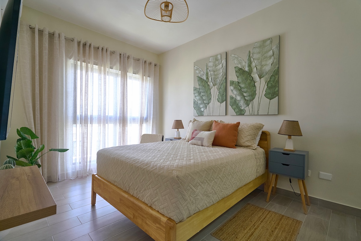 Percutian Sempurna Anda di Punta Cana Nikmati apartmen pantai moden ini di tengah-tengah Punta Cana: Lokasi 📍 Utama: 5 minit dari lapangan terbang dan Supermercado Nacional. 4 minit dari Pantai Juanillo dan 10 minit dari Pusat Bandar. 🏡 Kemudahan: Memuatkan 5 tetamu (1 katil kelamin + katil sofa). Dapur serba lengkap, Wi-Fi pantas, dan 2 TV Pintar. 🌊 Tambahan: Kolam renang, tempat letak kereta dan lif. Kawasan ⭐ senyap dengan ketersediaan hos 24/7. Perkhidmatan ⭐ yang luar biasa. Tempah sekarang dan alami syurga! 🌴