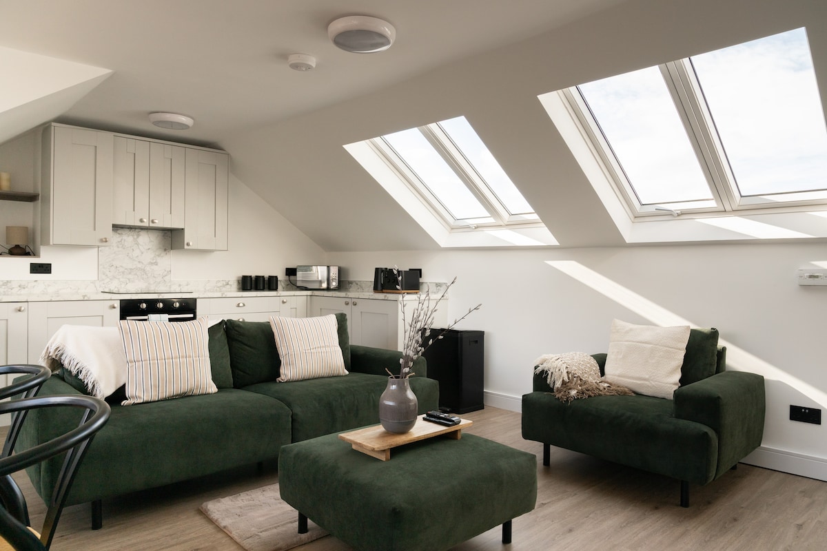 Apartmen loteng yang cerah dan moden, pusat Brockenhurst