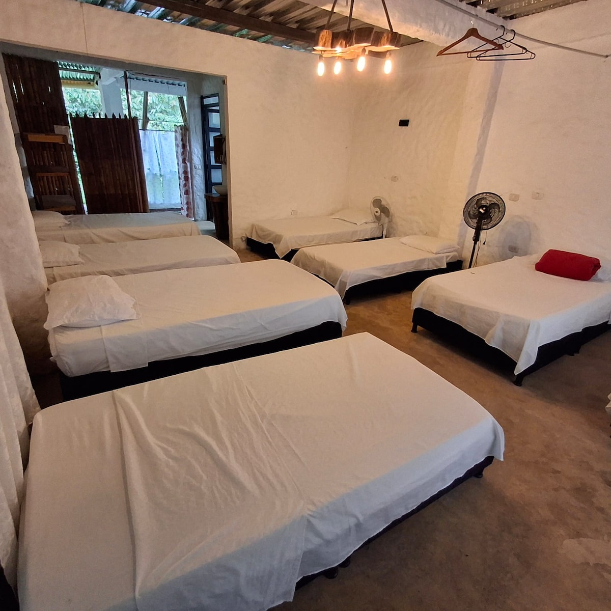 Habitación con 2 camas, Amplias zonas comunes, asadero Extensas zonas verdes , laguna natural para disfrutar del paisaje y fauna local. Toda la naturaleza que nos rodea es un lugar fantástico para el avistamiento de aves, peces , nutrias , babillas (cocodrilos ) Piscina recreativa planeada para uso de niños y adultos profundidad máxima de 140 cm Campo de mini- golf 1 putter Cercanía a rutas para ciclismo y caminata Existe opción de cama adicional