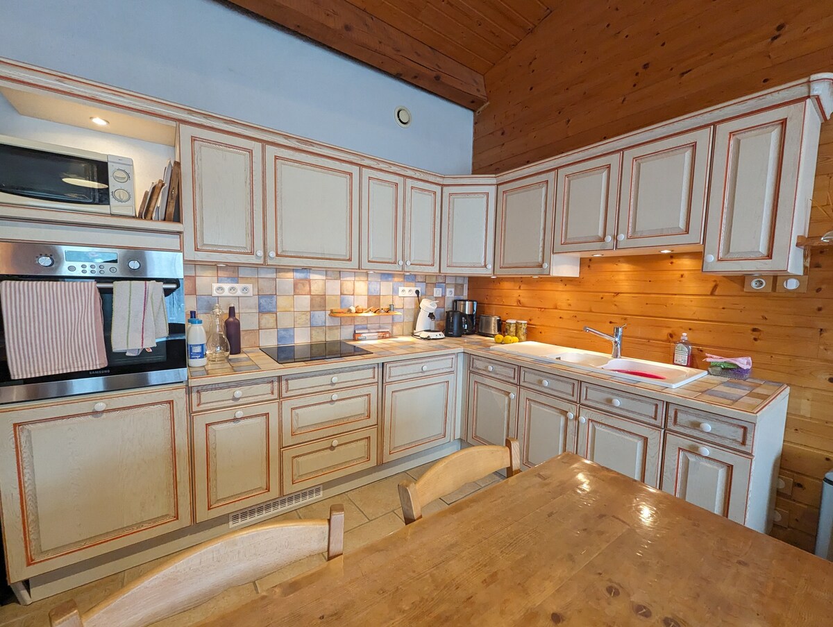 Hartanah yang unik dan tersendiri ini terletak dengan tenang di kawasan tinggi tapak ini. Chalet kayu kami yang selesa mengalu-alukan anda di antara buluh & pain. Di sini, kami hidup mengikut rentak alam semula jadi dengan bukaan kaca yang besar, sesuai untuk menikmati cahaya dan mengagumi langit berbintang. Hiasan yang menarik dan keselesaan sepenuhnya. Dari September hingga April, spa boleh didapati dengan yuran tambahan: Mandian Nordic dengan api kayu! Selamat datang ke rumah kami! Laurine & Victor