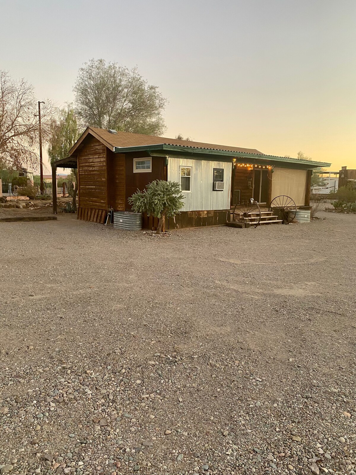 Rumah gaya kabin yang tenang di pusat Quartzsite, AZ. Ini ialah kabin 2 bilik tidur 1 bilik mandi yang terletak di penginapan gaya barat yang unik. Terdapat banyak tempat letak kereta dan anjung yang damai untuk menikmati pemandangan indah yang mengelilingi penginapan ini. Kami mengalu-alukan haiwan peliharaan dan pengembara yang datang melalui bandar mencari penginapan semalaman!