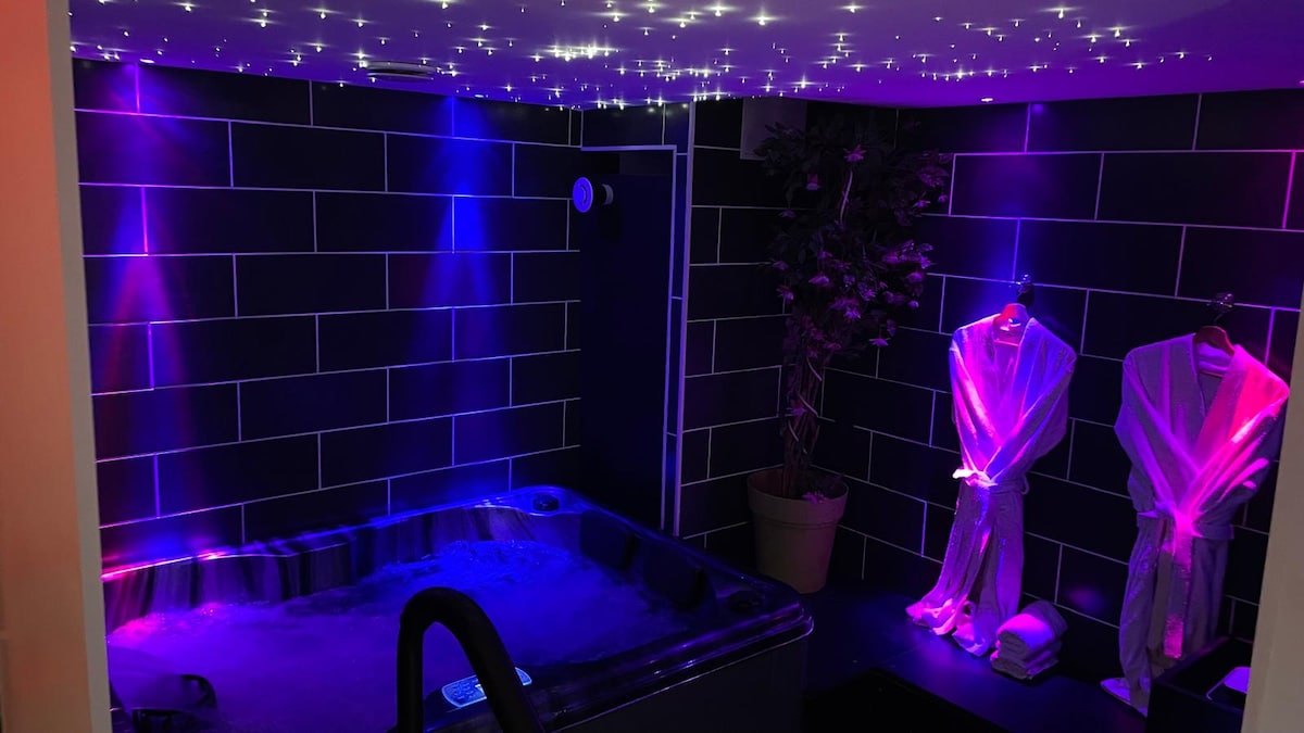 Maison d’hôte sécurisée avec portail à digicode, stationnement en toute tranquillité. Au rez-de-chaussée : espace entièrement dédié avec spa 72 jets vidé et nettoyé entre chaque client (vidéo fournie le jour de votre arrivée), coin repas pour dîner romantique et salon cosy avec Netflix. À l’étage : espace nuit totalement séparé avec chambre, salle de bain et salle de massage privative. Lit KING SIZE et literie premium. À 10 min de Douai et Gayant Expo. Commerces et restaurants à proximité.