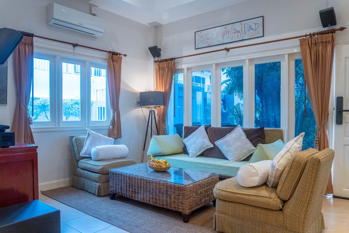Vila Tropika 2BR: Patio Tepi Kolam & Berjalan Kaki ke Laut