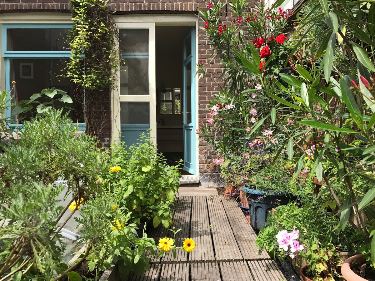 Apartmen studio di tengah-tengah bandar ini menyediakan gabungan jarang ditemui antara kesunyian dan kemudahan pusat bandar. Anda akan mempunyai Teres Taman peribadi anda sendiri dengan Sauna, bersama-sama dengan keselesaan ruang studio yang direka dengan teliti, semuanya di rumah bersejarah yang terasa seperti Amsterdam! Terdapat pemandangan atas bumbung yang indah untuk dinikmati, katil mewah, dapur kecil dan ruang rehat di dalam dan di luar. Ia mudah untuk berjalan kaki ke tarikan utama bandar dan terdapat banyak restoran di depan pintu.