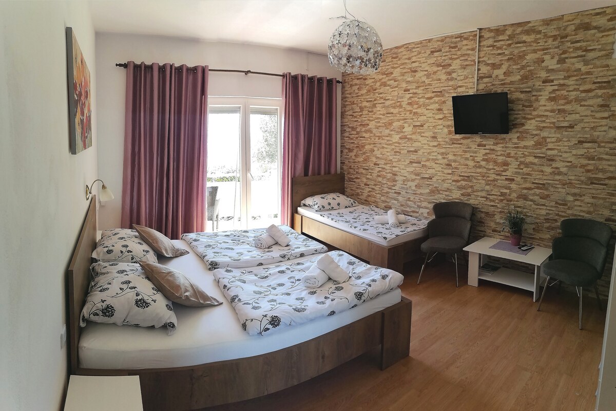 Tempat yang sangat bagus, bersih dan tenang dengan pemandangan pemandangan. Sesuai untuk percutian musim panas. Pantai yang cantik berhampiran dan naure yang cantik. Dalam aplikasi anda ada bilik mandi dapur anda sendiri dua bilik tidur gril sat tv tempat letak kereta wi-fi terase dengan pemandangan laut
