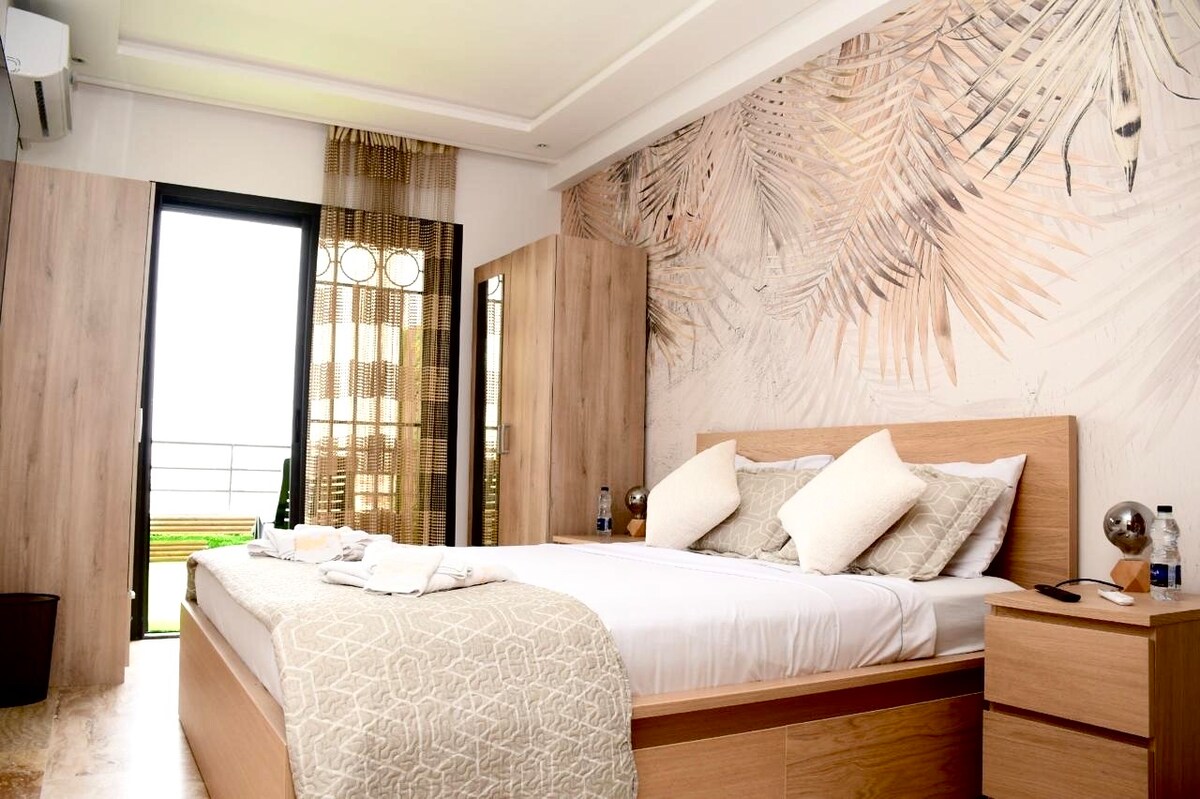 Offrez-vous un séjour premium au cœur d’Agdal ! Cet appartement moderne de 45 m² est idéalement situé à 5 min de la gare TGV, proche des restaurants, commerces et attractions. Profitez d’une cuisine équipée, Smart TV avec Netflix, Wi-Fi rapide, climatisation réversible disponible sur demande (avec supplément), et d’un accès au rooftop avec vue panoramique sur Rabat et l’Atlantique. Résidence sécurisée avec gardien et caméras. ✈️ Transfert aéroport disponible (en supplément).