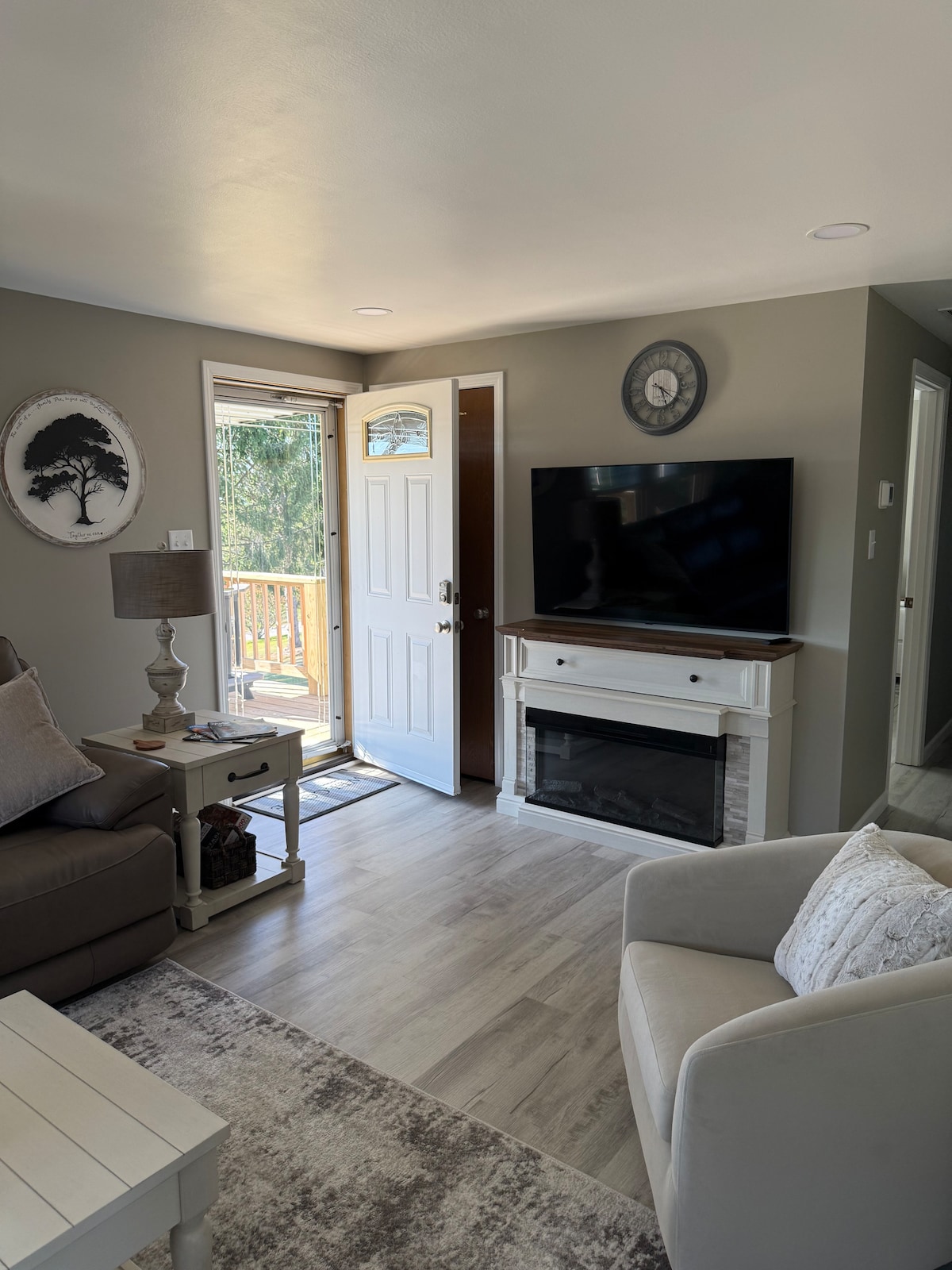Take it easy at this unique and tranquil getaway: The River Cabin has a large, covered porch overlooking Millcreek and exclusive access to a dock, fire-ring area, and deck with table, chairs and umbrella. It sleeps five (2 full size, 1 twin). Includes a fully stocked kitchen, a full bathroom, and linens. The dock sits right on Millcreek, and is a lovely place to relax and fish. Up to 2 pets allowed for a fee. Additional $5 daily charge the 5th guest.