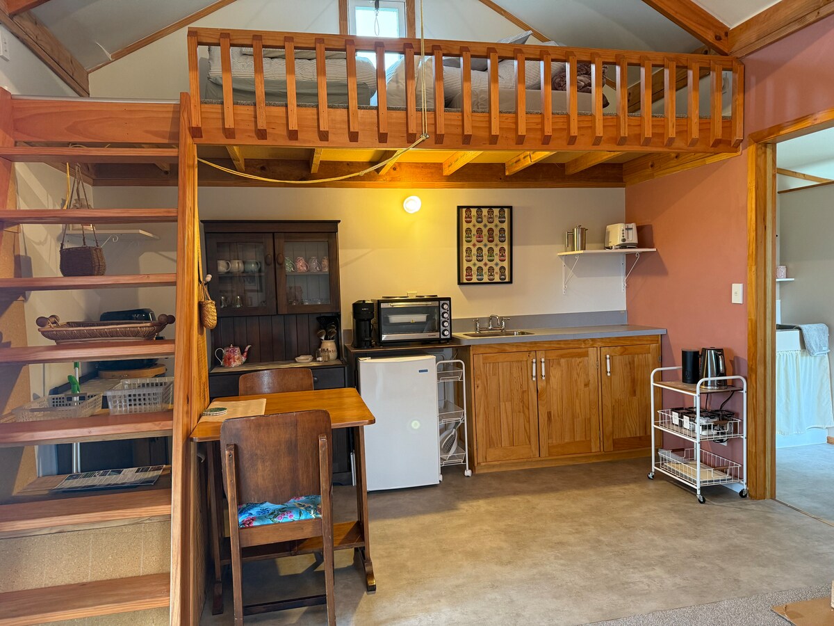 Misty Mountain Hut-Ruapehu is located in the sleepy little village of Rangataua, 5 minutes distance to Mountain road going up to the Turoa skifield and Ohakune. Vila kolonial 1 bilik tidur mempunyai pemandangan gunung yang indah. Wifi tanpa had dan kotak api baharu dengan banyak kayu api dan pam haba memastikan anda hangat pada musim sejuk. Masa kegemaran saya di sini ialah musim panas untuk berjalan-jalan/berbasikal mendaki gunung yang menakjubkan untuk menikmati pemandangan yang indah. Misty Mountain Hut menyokong kakitangan tempatan dengan membayar $ 40/jam untuk pembersihan.