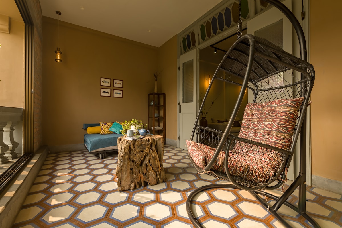 Alami penginapan unik di apartmen menawan di tingkat atas (4) kedai kopi dan kedai kopi The Red Bari. Tinggal di bangunan warisan yang dipulihkan dan diubahsuai dengan suasana Calcutta yang tulen dan semua keselesaan kemudahan moden. Airy, dengan banyak cahaya semula jadi dari tingkap dan akses ke teres. 2 minit berjalan kaki dari Metro, terletak di pusat bandar. Akses lif tersedia sehingga tingkat 3. Akses kepada ruang kerja khusus, dan kawasan umum lain.