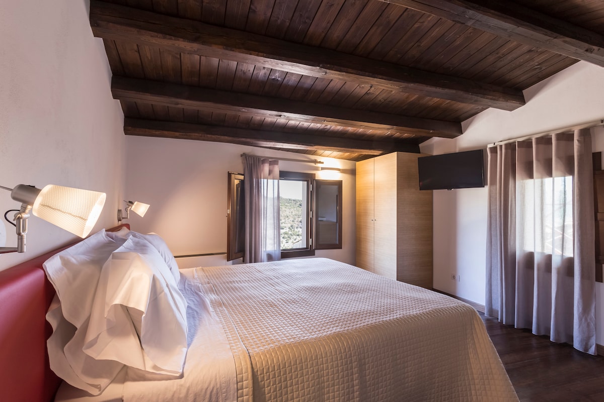 Bilik Double Klasik, dengan reka bentuk selesa seluas 20 meter persegi menghadap halaman dalaman penginapan. Lantai batu Modica, dilengkapi dengan setiap keselesaan, wi-fi percuma, selamat, pengering rambut, kit kesopanan, tuala mandi, jubah mandi, pendingin udara bar mini, meja kerja, kerusi rehat.