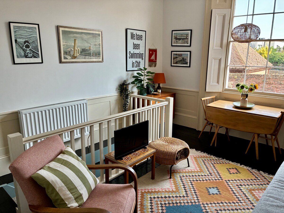 Cosy restored Georgian townhouse over four floors, a short walk to Ramsgate seafront and town. Sleeps 4 in 2 king bedrooms with 2 bathrooms (1 en-suite). Fully equipped kitchen with range cooker & dishwasher, plus comfortable living space. Free street parking, good WiFi, close to shops, cafés & Loop bus (Margate/Broadstairs). Small dog considered (fee). Note: steep stairs, not suitable for limited mobility.