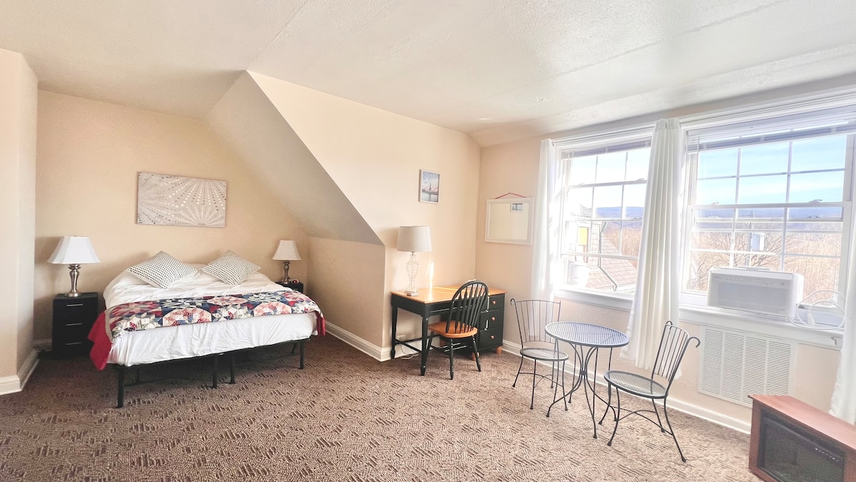 Menginap di DTC Lodge Bersejarah di Dailey, WV dan diangkut kembali ke tahun1930-an, dengan keselesaan moden dan Wi-Fi sepantas kilat! Bilik Queen gaya hotel yang luas ini dengan bilik mandi penuh ensuite dengan pancuran mandi, peti sejuk, ketuhar gelombang mikro dan Smart TV mempunyai semua yang anda perlukan untuk penginapan jangka pendek atau panjang! Hentian hebat untuk meneroka kawasan Elkins, Snowshoe dan Cannan Valley. Struktur batu yang unik dan bersejarah ini, yang dibuat dengan halus semasa Kemelesetan Besar adalah sebahagian daripada Daerah Bersejarah Tygart Valley Homesteads.