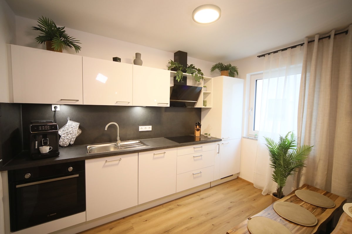Selamat datang ke rumah sementara anda yang selesa! Apartmen 1 bilik tidur yang dilengkapi dengan perabot cantik ini terletak 5 minit berjalan kaki dari pusat bandar Ravensburg – tenang, cerah dan sesuai untuk pasangan atau pengembara solo. Dengan dapur lengkap, katil 160 cm, Wi-Fi pantas dan tingkap besar, apartmen ini menawarkan segala-galanya untuk penginapan yang santai.