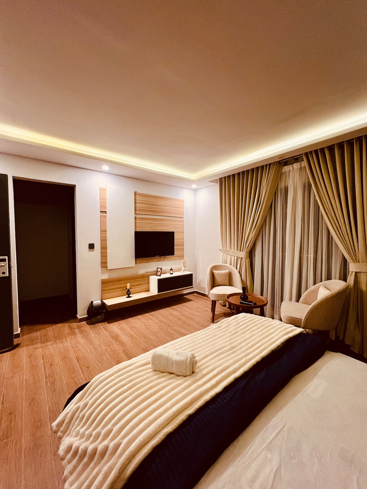 Alami kehidupan hotel 5 bintang di Suite Presiden eksklusif ini yang terletak di Bahria Heights 1. Direka untuk VIP perniagaan dan pasangan, apartmen mewah ini menawarkan privasi, keanggunan dan keselesaan premium dalam suasana yang selamat dan mewah. Menampilkan ruang dalaman gaya hotel, hiasan yang halus, pencahayaan persekitaran dan perabot mewah, suite ini menawarkan penginapan eksekutif premium dengan suasana yang tenang dan sofistikated.
