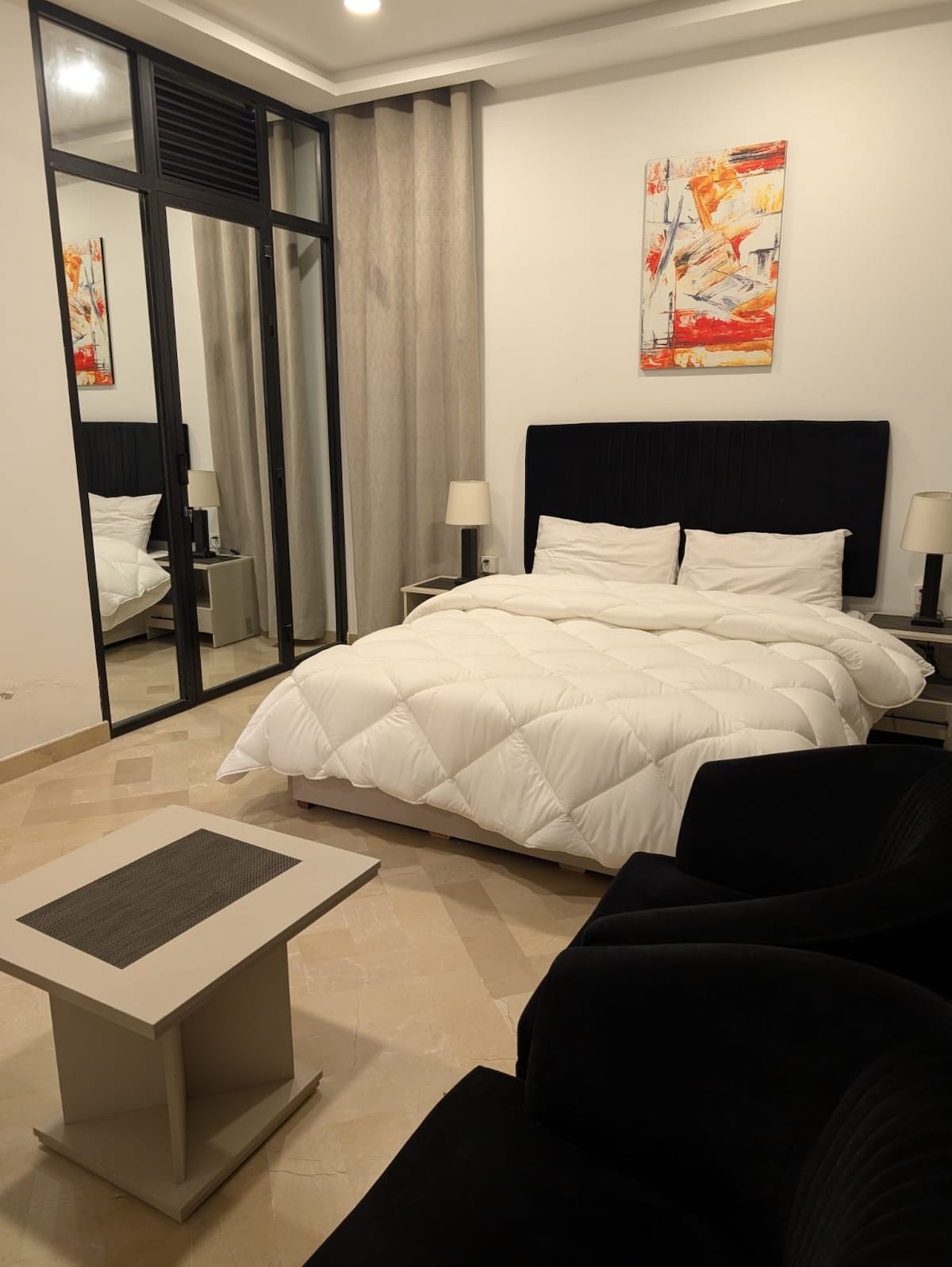 Pergi ke Lux 2BHK Boutique Suite MMUK, tempat percutian moden dan selesa hanya 4 minit dari D-12. Nikmati tingkat bawah tanah persendirian dengan ruang dalaman yang elegan, TV pintar 55" dengan Netflix dan Prime, WiFi pantas, dan bilik biliard khusus untuk hiburan. Sesuai untuk keluarga, pasangan dan pengembara perniagaan yang mencari keselesaan dan gaya. Berdekatan dengan D-12 Markaz, Margalla Hills, Masjid Faisal, kedai dan kafe.