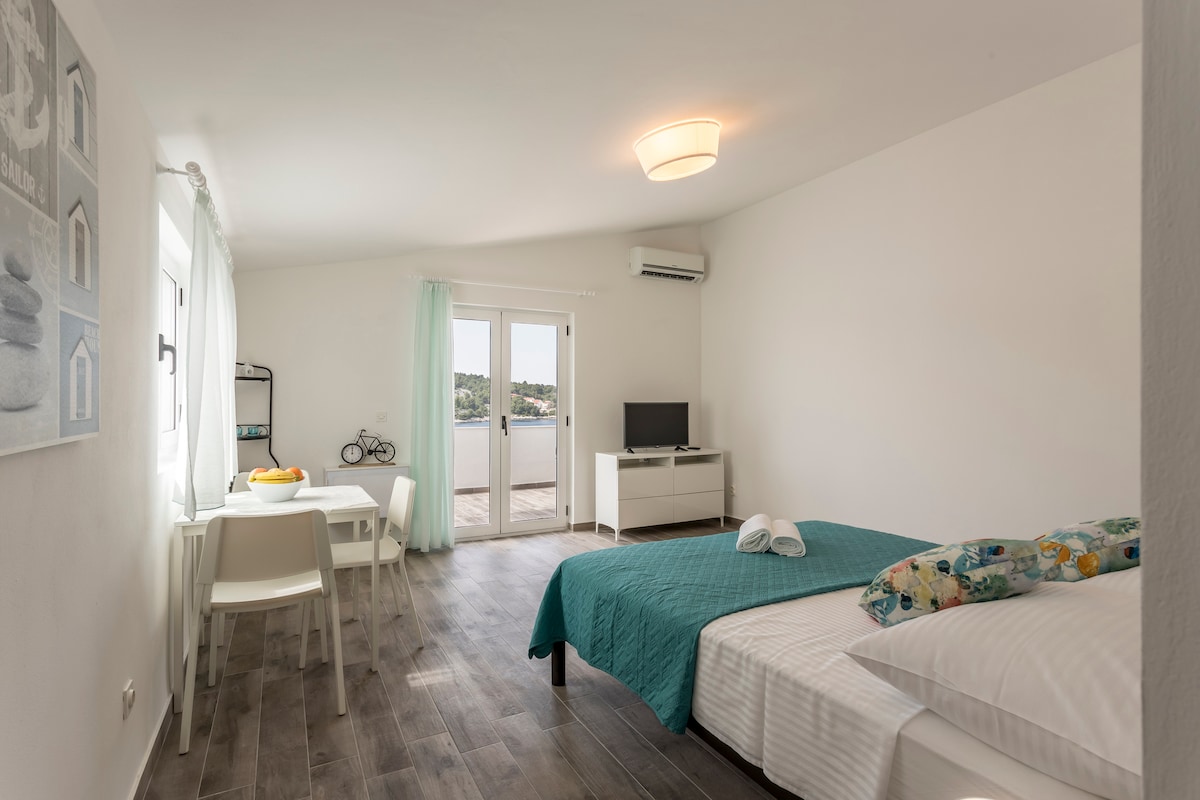 Apartmen baru yang comel dan selesa terletak di kampung kecil Razanj berhampiran Rogoznica di tengah-tengah Dalmatia. Terdapat satu bilik tidur, ruang tamu dengan dapur, bilik air dan balkoni dengan pemandangan laut yang indah. Semua tingkap mempunyai pemandangan laut. Terdapat tempat letak kereta percuma. Ia selesa untuk 4 orang. Ia mempunyai katil double di bilik tidur dan sofa besar untuk dua orang di ruang tamu. Kemudahan lain termasuk tv pintar, penyaman udara, mesin kopi, peti sejuk, ketuhar... Pantai hanya 20 meter jauhnya.
