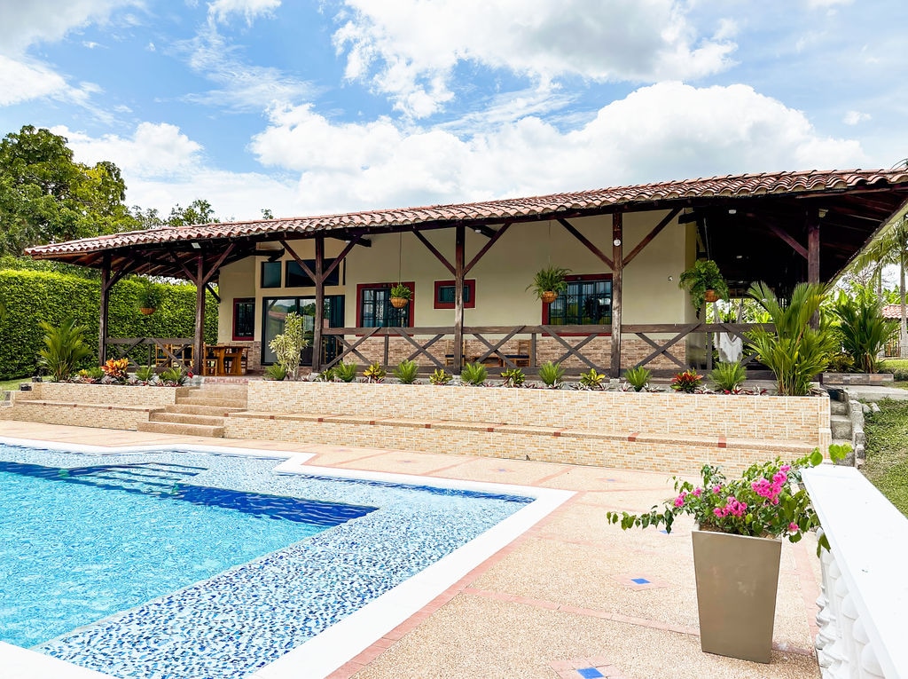 Discover tranquility in our new rural retreat near Armenia, immersed in the charm of the Coffee region of Colombia. If you are looking to get away from the hustle and bustle of the big cities, look no more. Your perfect getaway offers: 🛏️ King size bed in the Master room 🛁 4 full bathrooms 👨🍳Fully equipped kitchen 👙Relaxing heated jacuzzi 🃏Family room with games 💻 Office spaces with high speed internet 🌷Private community full of nature 🎢 Close to main attractions