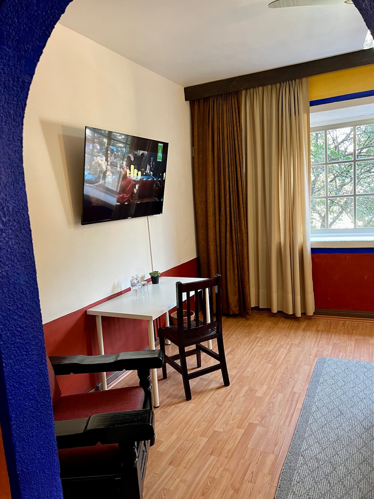 "The cozy terrace room embodies the expressive power of Clemente Orozco..." Casa Carmelia celebrates the art that shaped Mexico. "José" (#06) Room on our magnificent shared terrace is ideal for two guests. Double-size bed, private bathroom & modern tech for remoting. Just steps from the bustling Condesa scene, surrounded by restaurants, bakeries, boutiques, bars, and lush parks. Fully-equipped kitchens & dining. Enjoy the vibrant energy of La Condesa. 🚧 neighbor construction. Earplugs avail
