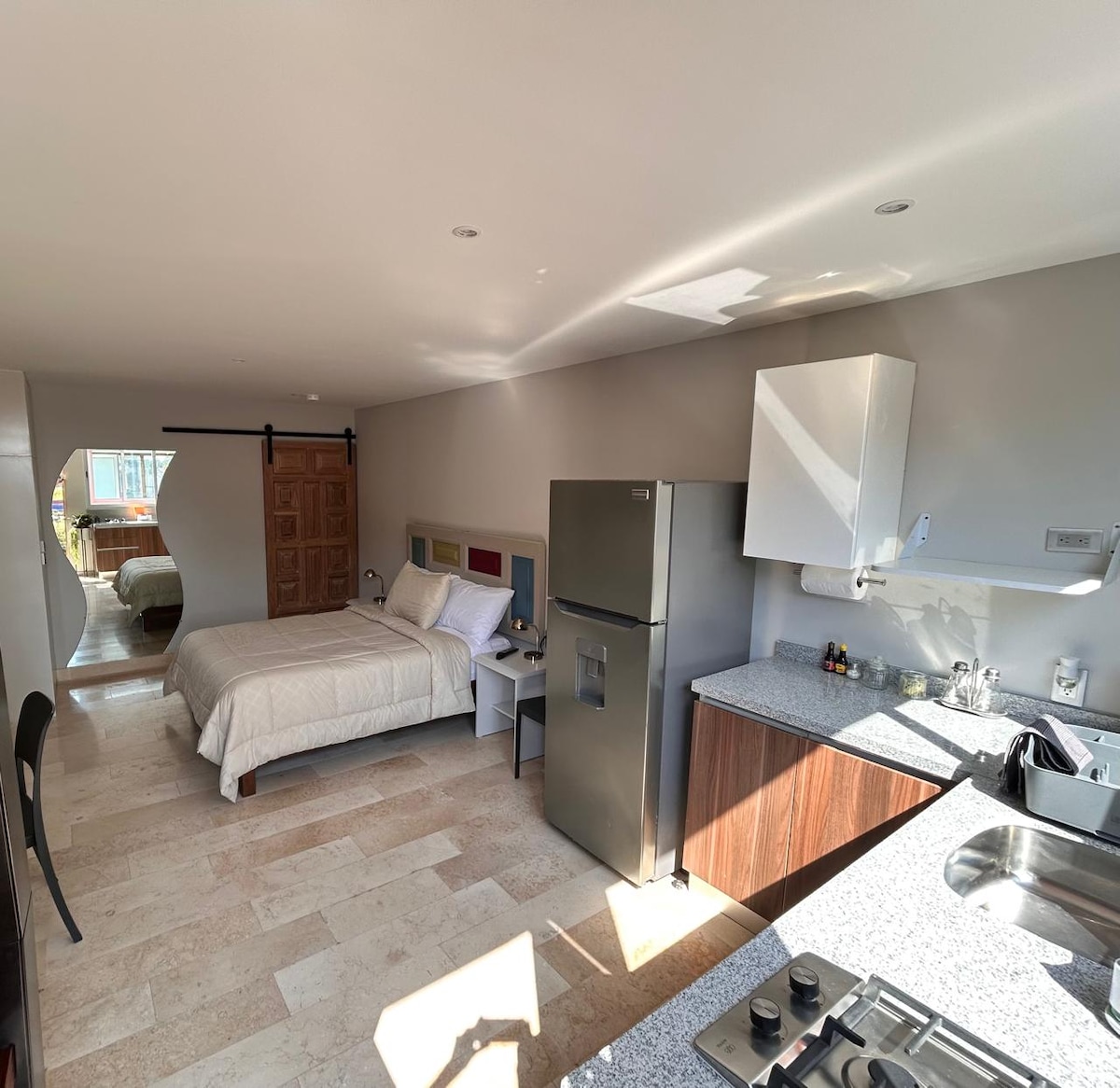 Bilik tidur kecil bebas, berperabot lengkap dan berfungsi, ia mempunyai bilik mandi bersepadu, TV Pintar, Wifi, katil double, pemanas, ketuhar gelombang mikro, mesin pembuat kopi dan minibar.Ia terletak di koloni Condesa berhampiran Taman Mexico, restoran dan tempat pelancongan seperti chapultepec.Ia bebas dan tidak mempunyai dapur atau kawasan untuk berkongsi, ia hanya termasuk bilik tidur.