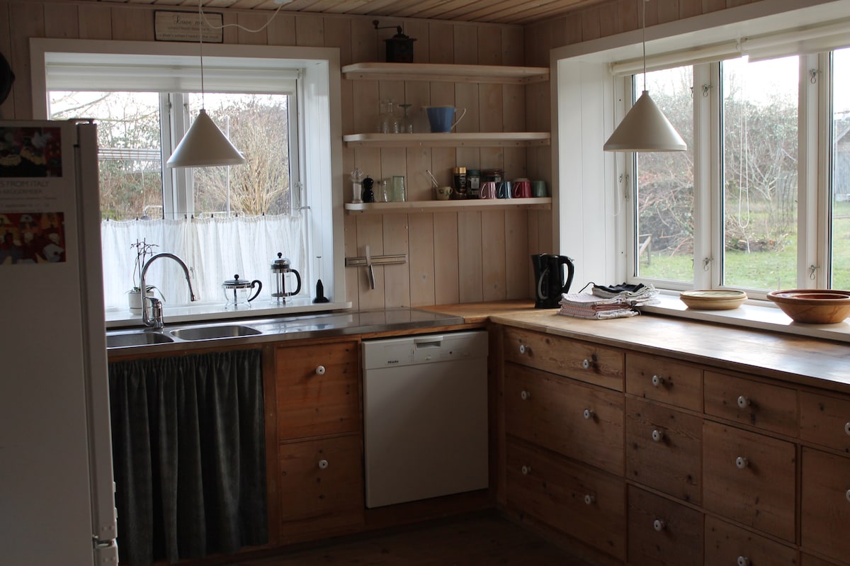 Penginapan tiga tingkat yang menawan, terletak dengan indah di pinggir Skaafterup dan di jalan ke Bisserup, di mana terdapat pantai berpasir dan pelabuhan tempatan yang selesa. Apartmen 80 m2 dengan ruang tamu terbuka dan dapur, dapur pembakaran kayu dan akses terus ke taman. Fokus kepada Kelestarian dengan, antara lain, perabot kitar semula. Penginapan ini telah diubahsuai dengan hormat mengikut prinsip lama - tingkap yang diperbuat daripada papan lapis (1809) yang dicat dengan minyak linseed, kerja mengikat dengan dowel, penebat bulu kertas, bumbung jerami dll. Pengisihan dan kitar semula sampah juga penting