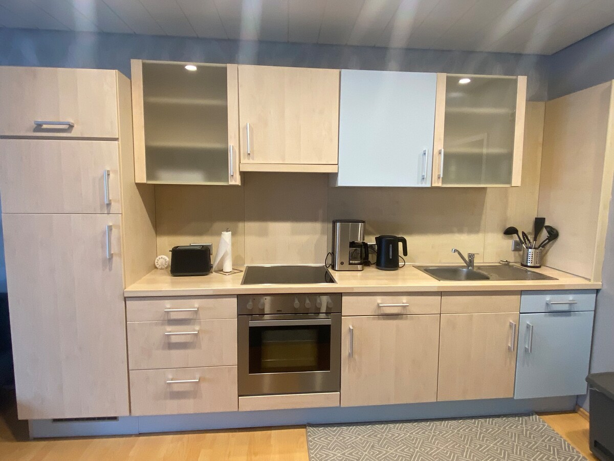 Apartmen kecil yang selesa.Zentral, tetapi terletak secara senyap-senyap di alam semula jadi. Apartmen ini menawarkan segala-galanya untuk penginapan jangka pendek atau panjang. Ia mempunyai ruang tidur yang bagus, dapur yang lengkap, serta ruang tamu yang selesa dengan TV dan meja. Terdapat tempat kecil yang selesa di teres untuk berlama-lama. Kolam renang kami menawarkan pelbagai jenis. Tempat letak kenderaan percuma di luar pintu. Anda boleh meletak basikal di halaman