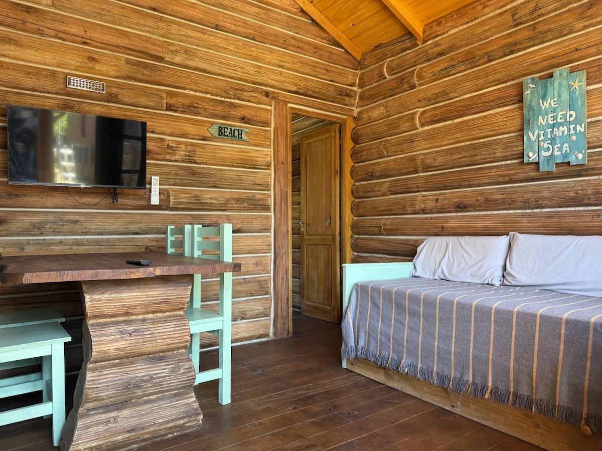 Relájate con toda la familia en este tranquilo alojamiento. Nuestras cabañas, están muy cerca de la playa y de la calle principal. Tienen un dormitorio con cama de 2 plazas y un sillón cama en el living donde pueden descansar otras dos personas. Aire acondicionado, tv smart, baño y cocina super completos! Parrilla, espacio exterior para comer y relajarse. Estacionamiento para un vehículo.