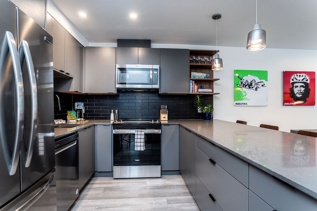 Terletak dalam suasana kediaman komersial yang selamat dan persendirian, Kedai ini dicipta dengan mengambil kira peminat sukan. Terletak dengan sempurna sebagai pangkalan anda kepada semua yang ditawarkan oleh Revelstoke. Dilengkapi dengan perabot desa moden yang selesa, tilam SealyPosturepedic ® & peralatan tahan karat, suite kami direka dengan menarik untuk pengalaman yang unik dan menghiburkan. Garaj tingkat utama dilengkapi dengan anak patung kereta salji, hos udara, TV 80”, peti sejuk mini & pengering peralatan. Tempat letak kereta untuk treler termasuk.