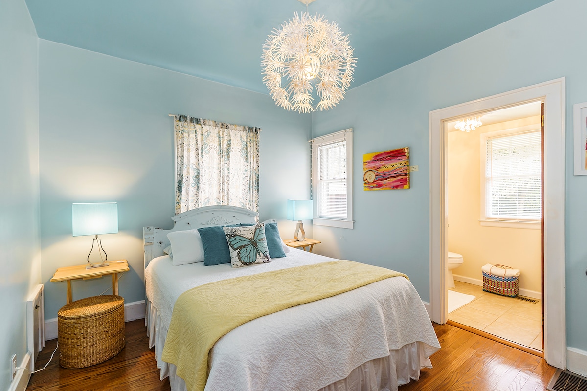 Beautiful Craftsman style Bungalow in the heart of Berea. This two bedroom, two bath cottage has off street parking and is a short walk to Artisan Village/Old Town, galleries, shoppes, and cafes. Step into a beautiful, comfortable, clean environment featuring original art, hardwood floors, tall ceilings, and queen-sized beds. Basic TV channels, Roku, and high-speed internet. Walk to Nightjar for dinner, Native Bagel for breakfast or an early lunch. Great neighborhood!