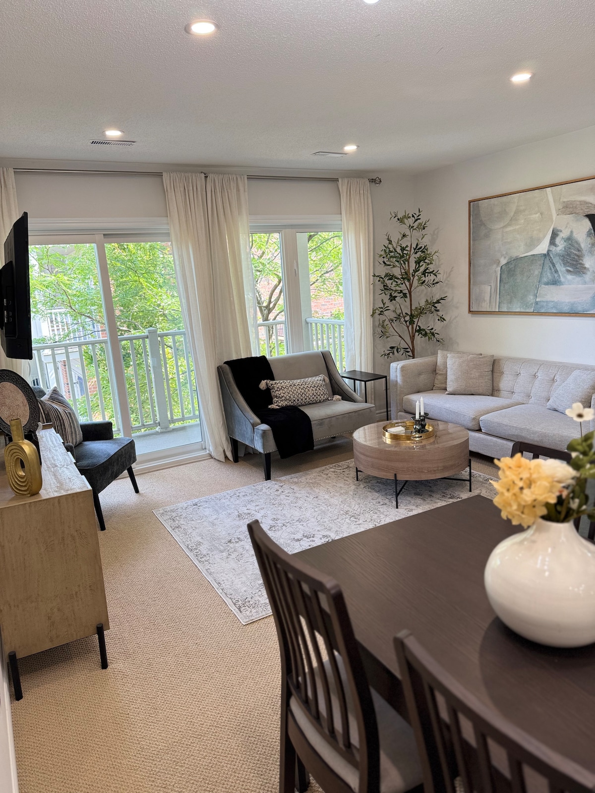 Selamat datang ke apartmen 1 bilik tidur bergaya kami, menampilkan ruang tamu yang luas sesuai untuk berehat atau menghiburkan. Susun atur terbuka termasuk dapur kecil yang selesa yang dilengkapi dengan semua keperluan asas. Meja pejabat khusus sesuai untuk kerja atau belajar jarak jauh. Terletak di kejiranan yang tenang, ruang yang cerah dan moden ini sesuai untuk pasangan, pengembara solo atau penginapan perniagaan. Nikmati keselesaan dan kemudahan sambil menginap berhampiran dengan tarikan tempatan, restoran, dan bersiar-siar!