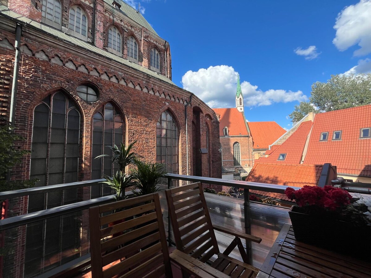 In the heart of Old Riga, in a renovated historic building of the 17th Century (the former Mansion of Riga Governor), a Great Duplex Attic compris of: 2 Bedrooms, 1 Living Room, 1 Kitchen and 1 Bathroom -Lokasi Pusat Sempurna - Bergaya, Elegan dan Selesa - Perabot mewah -Tenang untuk tidur yang nyenyak - Pemandangan Unik di Kubah -Seterusnya kepada semua tarikan yang paling penting di Bandar ini 50 meter dari Dome Square dan pemandangan terus monumen Blackheads -Penglengkapan lengkap Penginapan yang tidak dapat dilupakan!