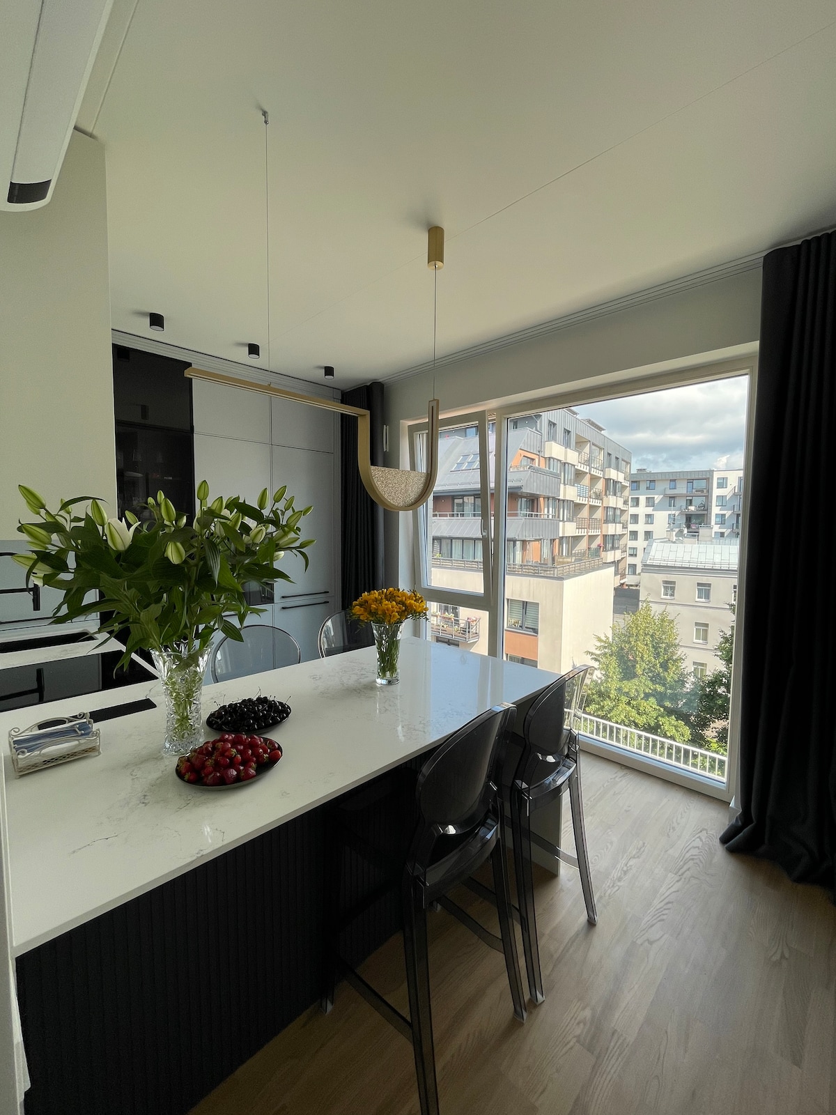Apartmen dua tingkat yang kontemporari dan luas di tingkat atas dengan siling tinggi, banyak cahaya siang, dan teres besar. Apartmen ini terletak di Daerah Art Nouveau, kejiranan berprestij dan mewah hanya 10 minit berjalan kaki dari Bandar Lama, yang terkenal dengan seni bina dan pilihan restoran dan bar. Anda akan menyukai ruang apartmen, suasana santai, teres besar, dapur serba lengkap, ruang makan, dan ruang tamu. Sesuai untuk berehat selepas meneroka bandar.
