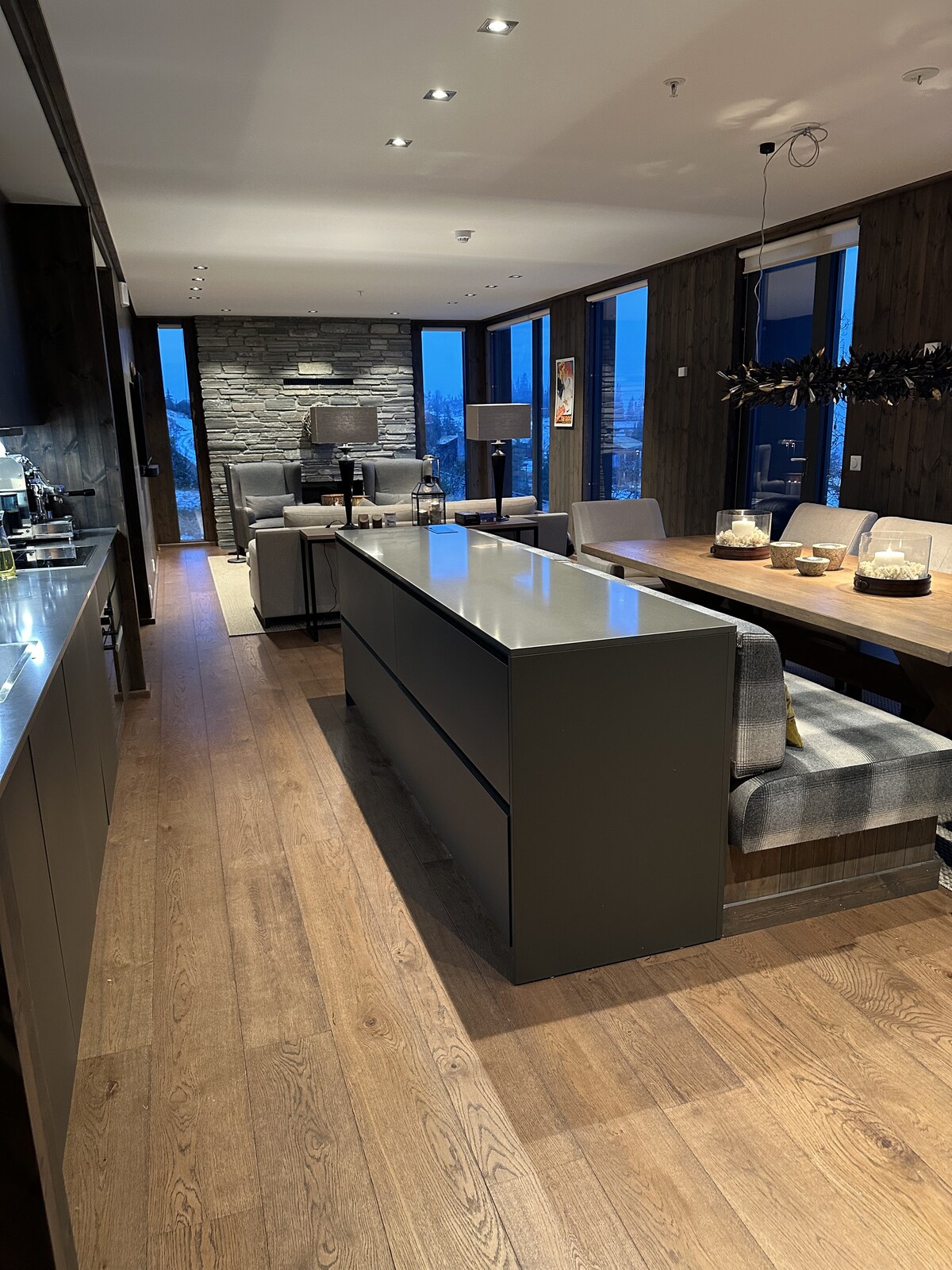 Pondok baru dengan kemudahan ski dan kemudahan tambahan yang mewah. Sangat lengkap dengan pemandangan unik ke arah gunung dan cerun alp. Kondominium ini terletak betul-betul di sebelah lereng latihan dan lereng Piala Dunia yang terkenal di sebelah timur Kvitfjell. Tingkap besar dari lantai hingga siling. 2 bilik mandi + tandas, serta bilik mandi. 4 bilik tidur: - "Bilik tidur utama" mempunyai katil double 180 cm dengan bilik mandi sendiri - Bilik tidur 2 mempunyai katil double 160 cm - Bilik tidur 3 mempunyai katil dua tingkat dengan katil 140 cm di bawah dan katil bujang 75 cm di atas - Bilik tidur 4 mempunyai katil dua tingkat dengan katil bawah 150 cm dan katil atas 80 cm.