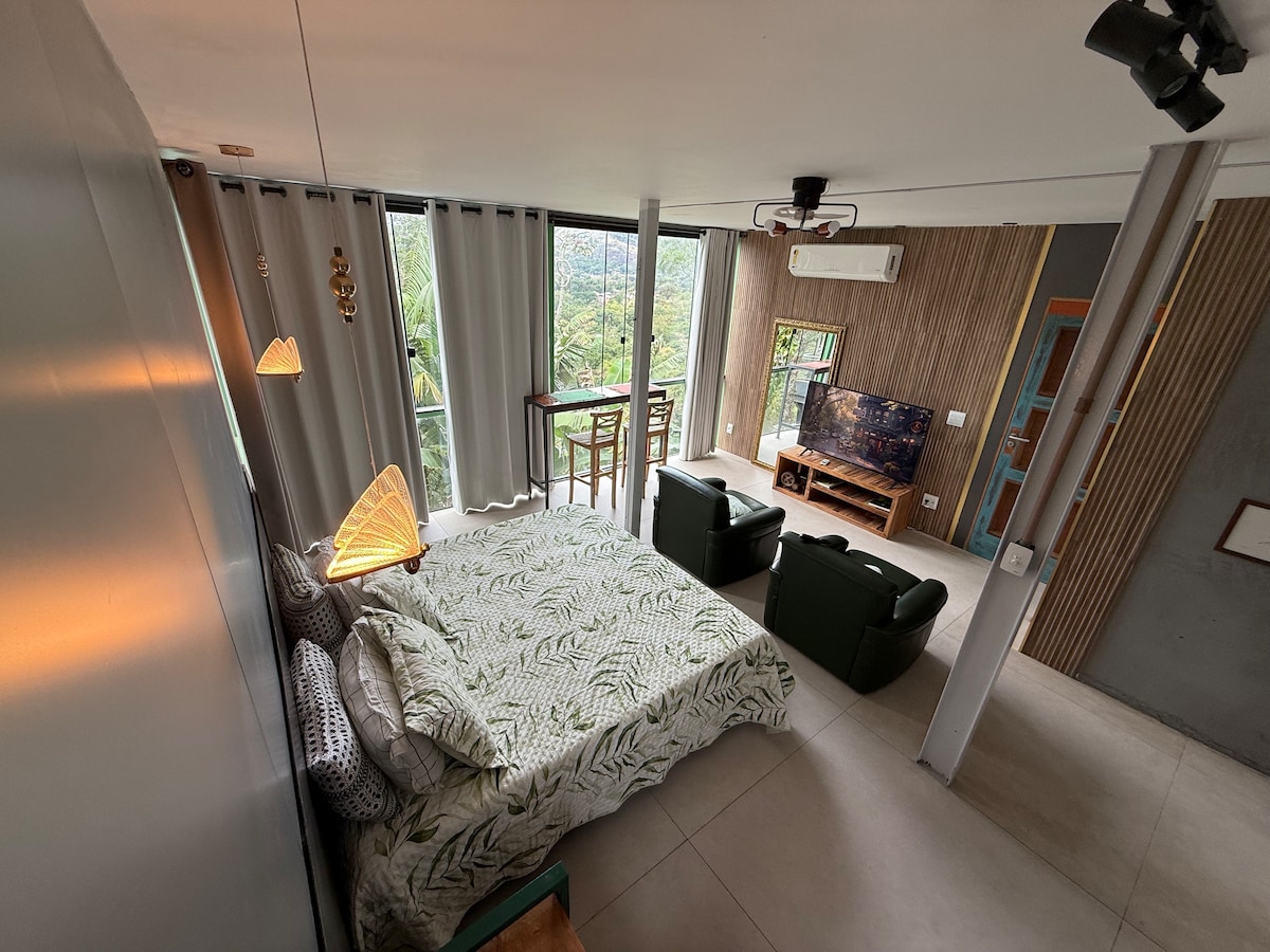 The Loft, sebuah karya agung Brazil kontemporari, menawarkan percutian eksklusif di kejiranan Joá yang indah di Rio de Janeiro. Dengan pemandangan laut yang menakjubkan, permata seni bina ini menampilkan ruang tamu yang luas dengan tingkap kaca lantai ke siling, pendiangan luar, kolam terjun kecil, almari pakaian, dan dapur bersepadu dalam ruang dalaman 60 meterpersegi. Bayangkan bangun untuk menikmati pemandangan panorama-perpaduan harmoni reka bentuk organik dan alam semula jadi menanti