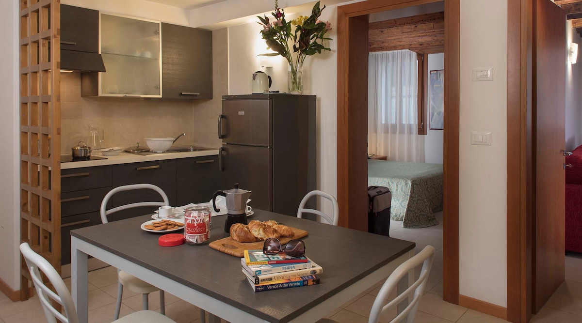 Di apartmen yang romantik dan selesa ini, hanya beberapa minit dari Dataran St. Mark, anda akan menikmati pemandangan yang menakjubkan di atas bumbung Venice. Anda akan menemui bilik tidur yang selesa dan katil sofa yang selesa dan akan mendapat akses kepada TV Netflix Ready, WiFi, pemanasan bawah lantai dan pendingin hawa! Hos kami akan ditawarkan kopi, teh, dan... sebotol wain yang baik dan sarapan alu-aluan di kedai roti terbaik kejiranan ini. Daftar masuk dilakukan secara peribadi. Haiwan peliharaan tidak dibenarkan.