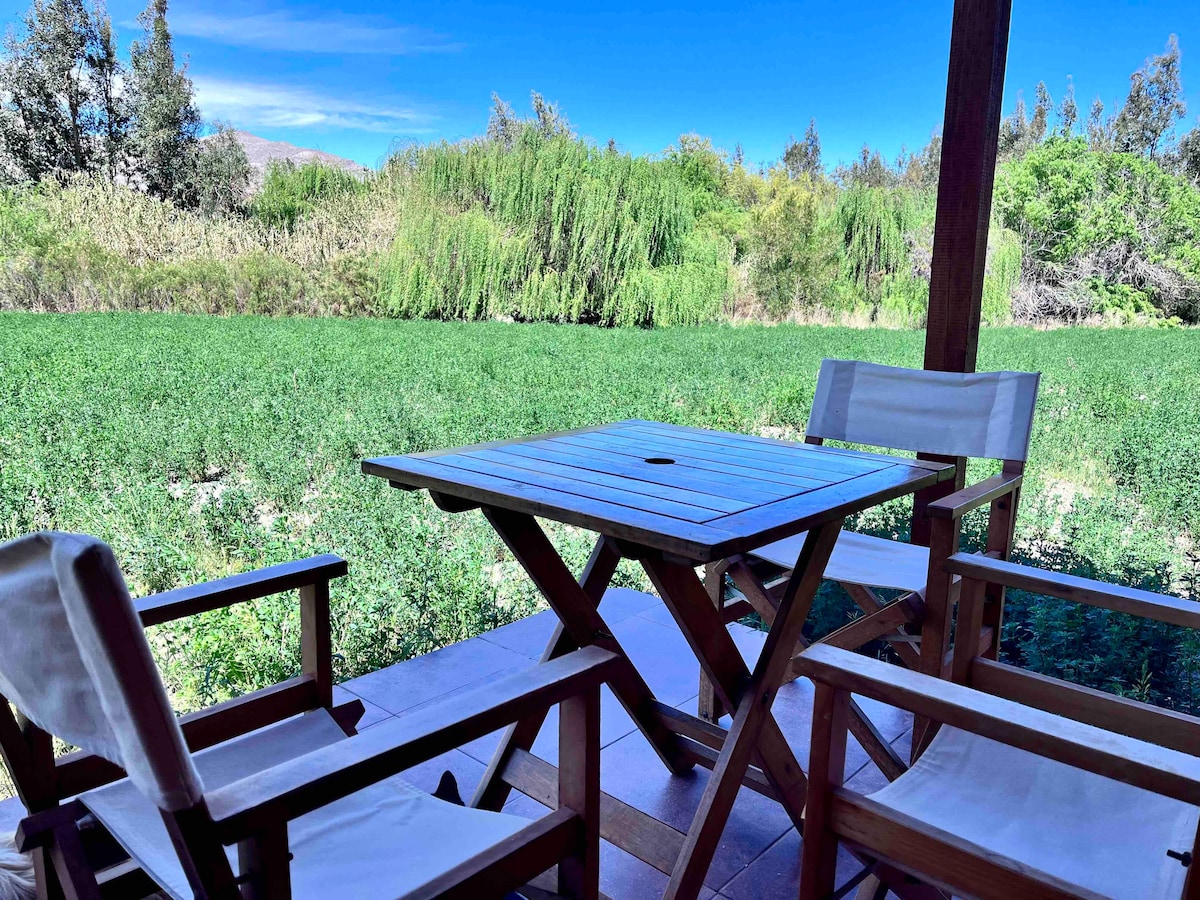 Bersantai bersama keluarga dan rakan-rakan di tempat yang tenang dan menakjubkan ini yang terletak di Lembah Elqui. Dikelilingi persekitaran ajaib dengan pokok anggur. Ia mempunyai akses terus ke sungai, kolam renang yang mencukupi, timah panas, dapur dan quincho yang selesa. Tenaga mistik yang tiada tandingan, iklim yang luar biasa, bukit-bukau dan langit berbintang yang mengagumkan akan menjadikan penginapan anda rehat yang tiada tandingan.