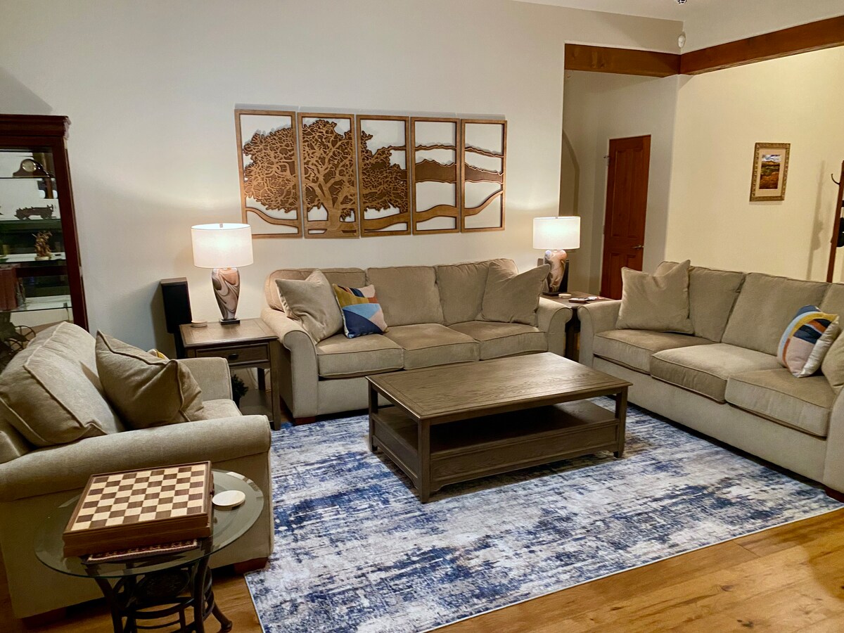 Townhouse gaya Santa Fe ini dilengkapi dengan baik untuk memasak dan berehat. Dapur dan bilik mandi baru-baru ini diubahsuai. Bilik tidur utama mempunyai katil Sleep Number, bilik tidur kedua mempunyai tilam mewah baharu. Ruang luar mempunyai suasana yang damai dengan lubang api gas yang santai dan permainan untuk kanak-kanak! * 2025: baru-baru ini ditambah: Udara Sejuk!! > 🎉 Tiket 4 Sandia Tramway percuma — bernilai $136! Berikan notis 2–4 minggu kepada hos anda, Teresa. Tiket adalah terhad, tidak tersedia semasa ABQ Ballo