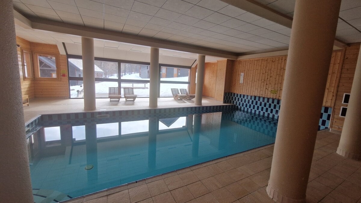 2 bilik, 6 orang, di kaki cerun ski, kolam renang