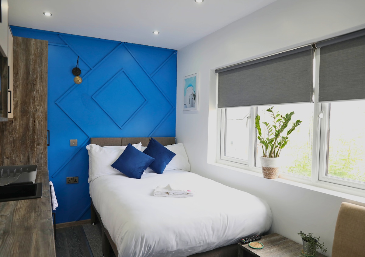 Apartmen berperabot lengkap Bilik pancuran mandi ensuite TV dapur serba lengkap dengan saluran satelit Freeview Akses internet percuma tanpa had melalui pautan berwayar dan wayarles Sistem pemanas dengan kawalan peribadi Ruang dobi yang dibina dengan kemudahan mencuci, mengeringkan dan menyeterika tanpa sebarang kos tambahan