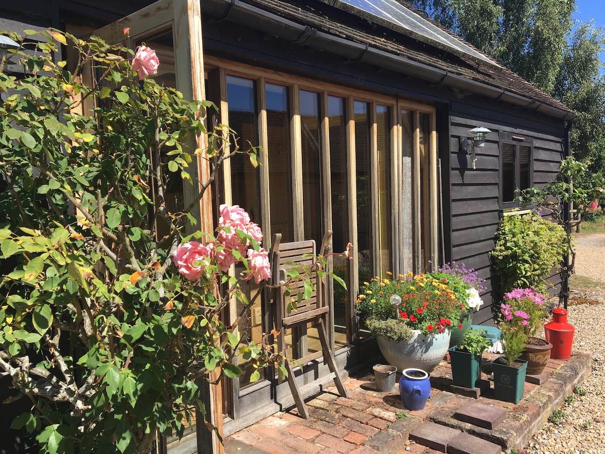 Kami ingin mengalu-alukan anda ke bangunan berbingkai kayu kami yang diubah suai (sekali merupakan gudang babi!) dengan perabot moden, lantai kayu dan siling yang tinggi. 1 bilik tidur double dan 1 bilik tidur twin. Dapur serba lengkap, wifi, TV Freeview, walk-in shower. Lokasi desa Kent yang damai, terletak di taman seluas setengah ekar, 1 batu dari Tenterden. Sesuai untuk percutian hujung minggu, percutian keluarga dan tempat yang ideal untuk mesyuarat perniagaan kecil.