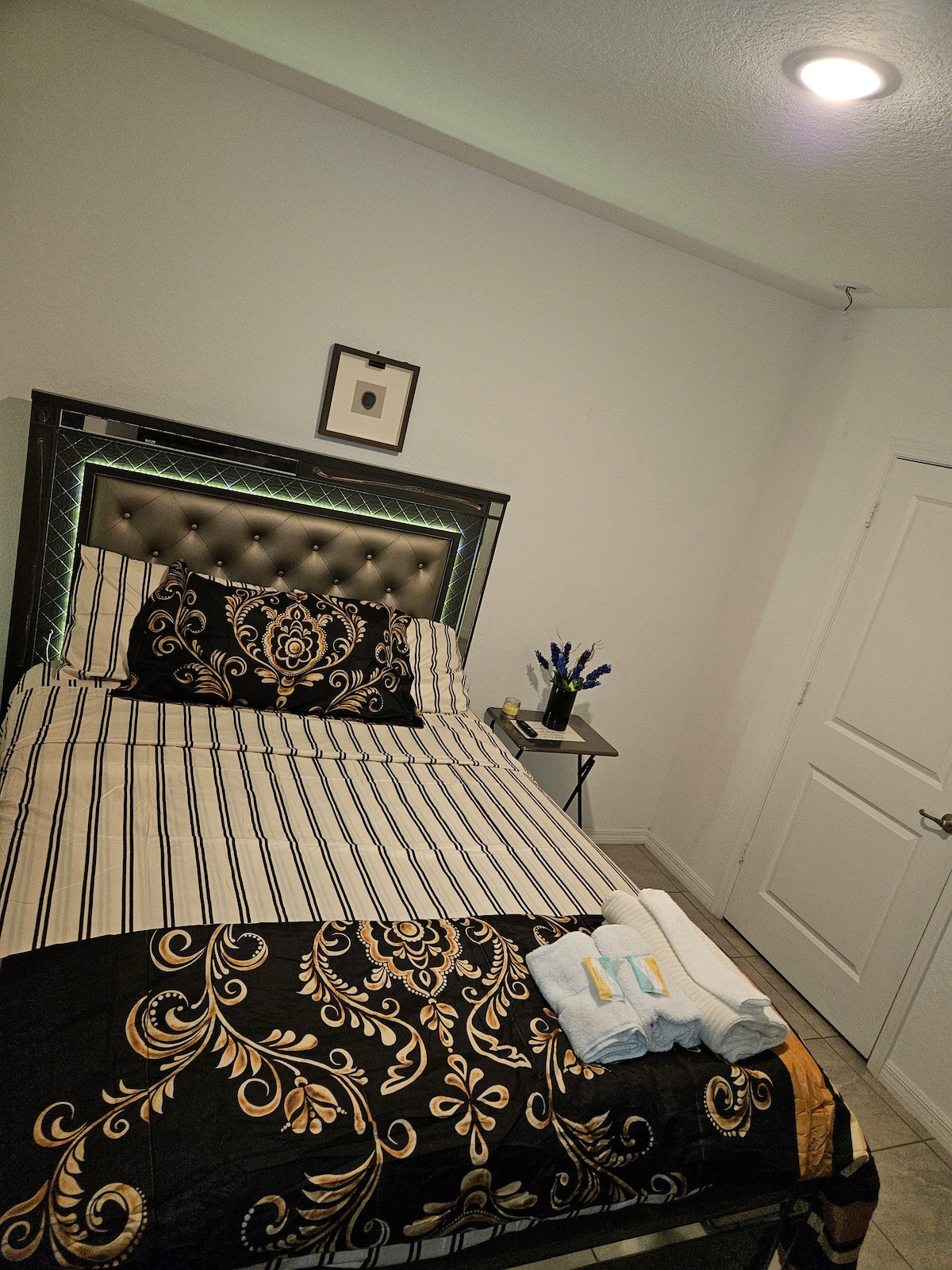 Only 20 min from the beach and 7 min away from Clover Park (home of the NY Mets), this 1-bedroom suite with a full kitchen offers all appliances and tableware you'll need. Security cameras on the exterior give peace of mind, while contactless check-in and keyless entry provide convenience. Climate and lights with Alexa, enjoy a Dream Cloud queen bed, closet, large dresser, desk, and 60-inch TV. Kitchen has a TV as well. Fresh towels and toiletries are provided, as well as high speed Wi-Fi.