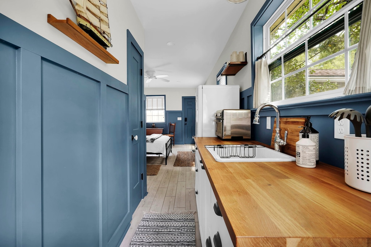 Letakkan sauh anda di suite ibu mertua yang diilhamkan oleh vintaj di Avondale yang bersejarah, kejiranan tepi sungai yang rimbun berhampiran Downtown Jacksonville dan 30 minit ke pantai. Terletak berhampiran I-10 dan I-95 dan Ortega Marina dan dalam jarak berjalan kaki dari Shoppes of Avondale, kawasan dermaga, gelanggang tenis awam dan taman. Baru diubahsuai, suite studio ini menampilkan katil bersaiz queen yang selesa, dapur dengan peti sejuk retro, TV skrin rata dan bilik mandi dengan semua keperluan asas.