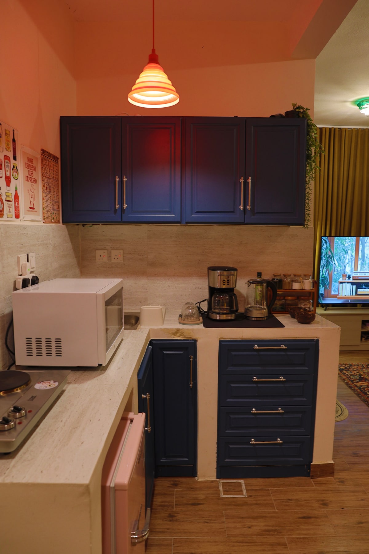 Terletak di pusat bandar Riyadh yang sibuk dengan acara-acara berhampiran dengan Boulevard, lapangan terbang, kafe dan restoran istimewa yang direka dengan warna yang selesa dan harmoni. Anda boleh menikmati menonton TV dengan skrin 65 inci dan dilengkapi dengan ketuhar gelombang mikro, ketuhar atas, peti sejuk dan cerek. Ia menonjol dengan ruang yang luas dan pintu masuk Bohemian yang elegan dan privasi penuh dengan kemasukan dan keluar pintar. Saya berharap anda menikmati penginapan yang gembira dan selamat datang tetamu saya.