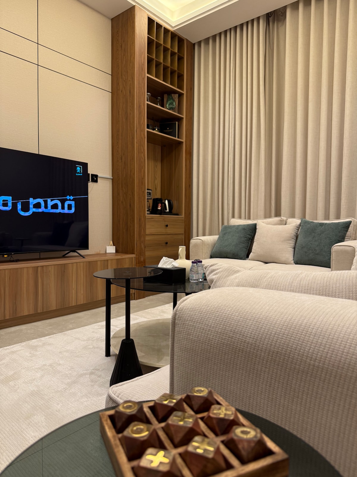 Apartmen mewah bersebelahan Riyadh Season Boulevard, bangunan Hometel Residence Dengan pintu masuk luaran persendirian dan kemasukan sendiri, terdiri daripada - Ruang tamu dengan meja biliard, penanaman semula jadi estetik, skrin TV pintar, dewan makan, dapur, dan bilik mandi tetamu, Sesi luar -dapur (ketuhar/ peti sejuk/ketuhar gelombang mikro/pembuat kopi/ cerek/mesin basuh/peralatan dapur) - Bilik utama dengan bilik mandi berasingan - Dua bilik tidur katil bujang, dengan bilik mandi berkongsi -Boulevard hanya 5 minit berjalan kaki