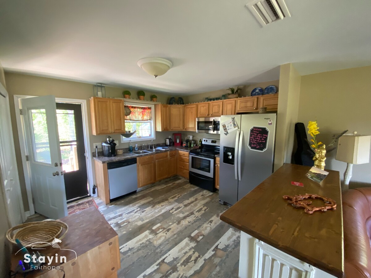 Dipilih sebagai Hos Terbaik AL 2021-23 ❤️ Nikmati percutian yang tenang di ladang persendirian seluas 10 ekar di kotej anda sendiri udara segar, langit berbintang, kicauan burung, tidur atau membaca di beranda depan Internet 1 gig, banyak DVD untuk hari hujan, basikal, kayak, peralatan pantai untuk kegunaan tetamu *tiada caj tambahan Bawa keluarga atau rakan tambahan, kami mempunyai 3 Airstream vintaj di hartanah untuk tetamu lain. Anjing yang mesra dialu-alukan 10 batu dari pusat bandar Fairhope 22 batu ke Pantai 1.5 batu dari jeti memancing Weeks Bay dan tanjakan bot Ladang Dilarang Merokok