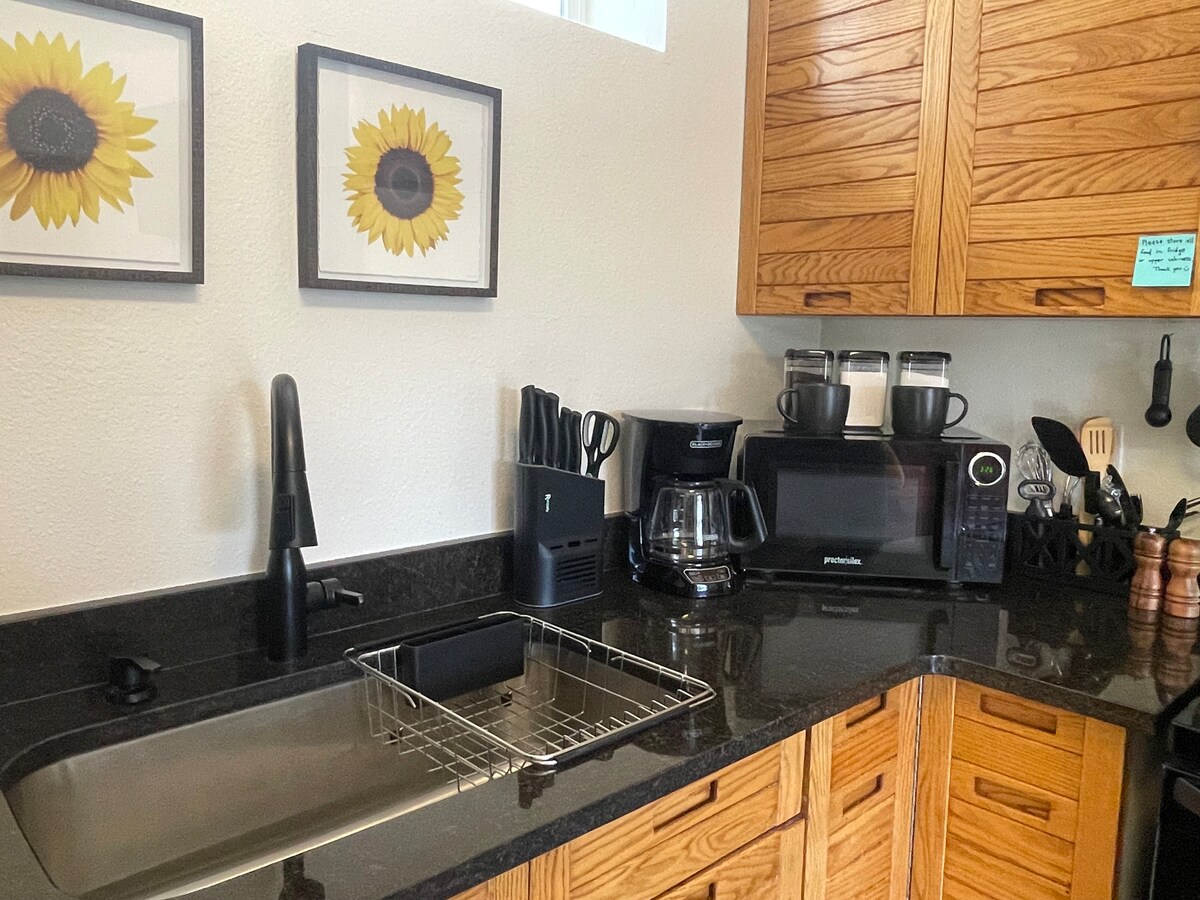 Nikmati pagi yang perlahan apabila matahari menapis langsir di ruang studio yang selesa ini, teguk kopi atau teh apabila hari tiba. Bersantai di bawah naungan pokok abu di dek di halaman berpagar persendirian. Panggang hidangan lazat di kawasan dapur luar, kemudian berjalan-jalan petang di hujung barat Loveland yang bersejarah untuk melihat matahari terbenam di pergunungan, kemudian masuk ke dalam tab mandi air panas untuk berendam sepanjang hari di bawah lampu kafe, atau bercerita tentang kebakaran di lubang api halaman belakang.