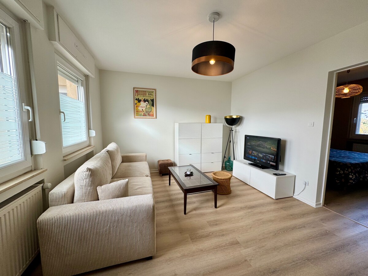 Datang dan cas semula bateri anda di tempat ini yang terletak di antara bandar dan kawasan desa, hanya 20 minit dari sempadan Luxembourg dan Jerman, dan 30 minit dari Belgium atau bandar Metz yang indah. Apartmen ini, yang terletak di cul-de-sac, menjamin anda ketenangan dan kedamaian. Kami dengan sukacita akan menasihatkan anda tentang pelbagai aktiviti berjalan kaki, monumen untuk dilawati, kawasan permainan untuk kanak-kanak dan restoran yang tidak boleh dilepaskan.