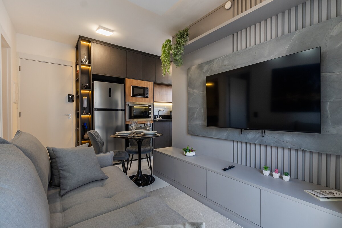 Apartmen moden 45m² di Moema dengan balkoni yang luas dan tempat letak kenderaan persendirian. Hiasan bandar yang bergaya dengan katil queen, dapur lengkap, pendingin hawa, Wi-Fi berkelajuan tinggi dan TV pintar. Bangunan ini menawarkan kemudahan lengkap dan keselamatan 24/7. Lokasi utama berhampiran Taman Ibirapuera, restoran, bar dan pusat membeli-belah terbaik. Sesuai untuk perniagaan, percutian atau penginapan yang lebih panjang.