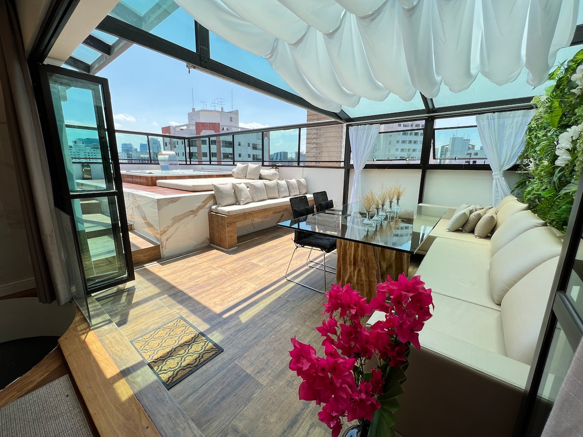 Cobertura Tríplex Cinematográfica, super moderna, com arquitetura e decoração minimalista. Além de vistas espetaculares de São Paulo, decorada com muito bom gosto, com atenção a todos os detalhes. Os três andares dessa cobertura são perfeitos para os hóspedes, que procuram uma estadia espetacular no bairro exclusivo da Vila Nova Conceição.