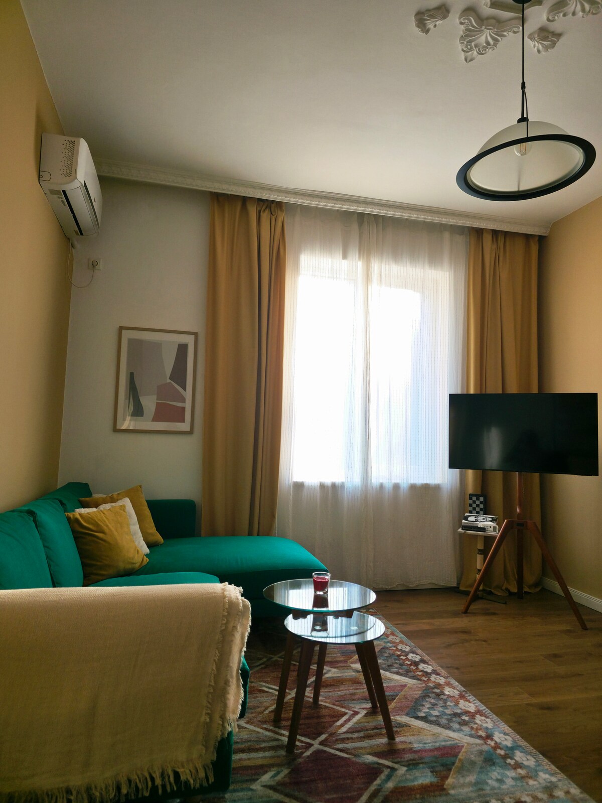 Selamat datang ke tempat percutian anda yang selesa dan tenang di tengah-tengah Plovdiv yang indah. Apartmen yang terletak di tengah ini menawarkan penginapan yang unik dan tidak dapat dilupakan, menampilkan reka bentuk yang tersendiri dengan dinding hijau gelap, perabot bergaya, dan perincian hiasan di seluruh apartmen Untuk kemudahan anda, kami menawarkan daftar masuk sendiri yang mudah supaya anda boleh tiba mengikut keselesaan anda. Lokasi pusat apartmen kami menjadikannya pangkalan yang sempurna untuk meneroka semua yang ditawarkan oleh Plovdiv. Untuk tetamu yang tiba dengan kereta, tempat letak kereta tepi jalan percuma tersedia