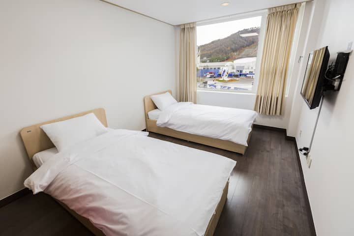 The White View-Pyeongchang_8 pyeong Superior Twin (2 Single), betul-betul di hadapan Pyeongchang Phoenix Park (tempat ski), tempat pelancongan sekitar & kemudahan